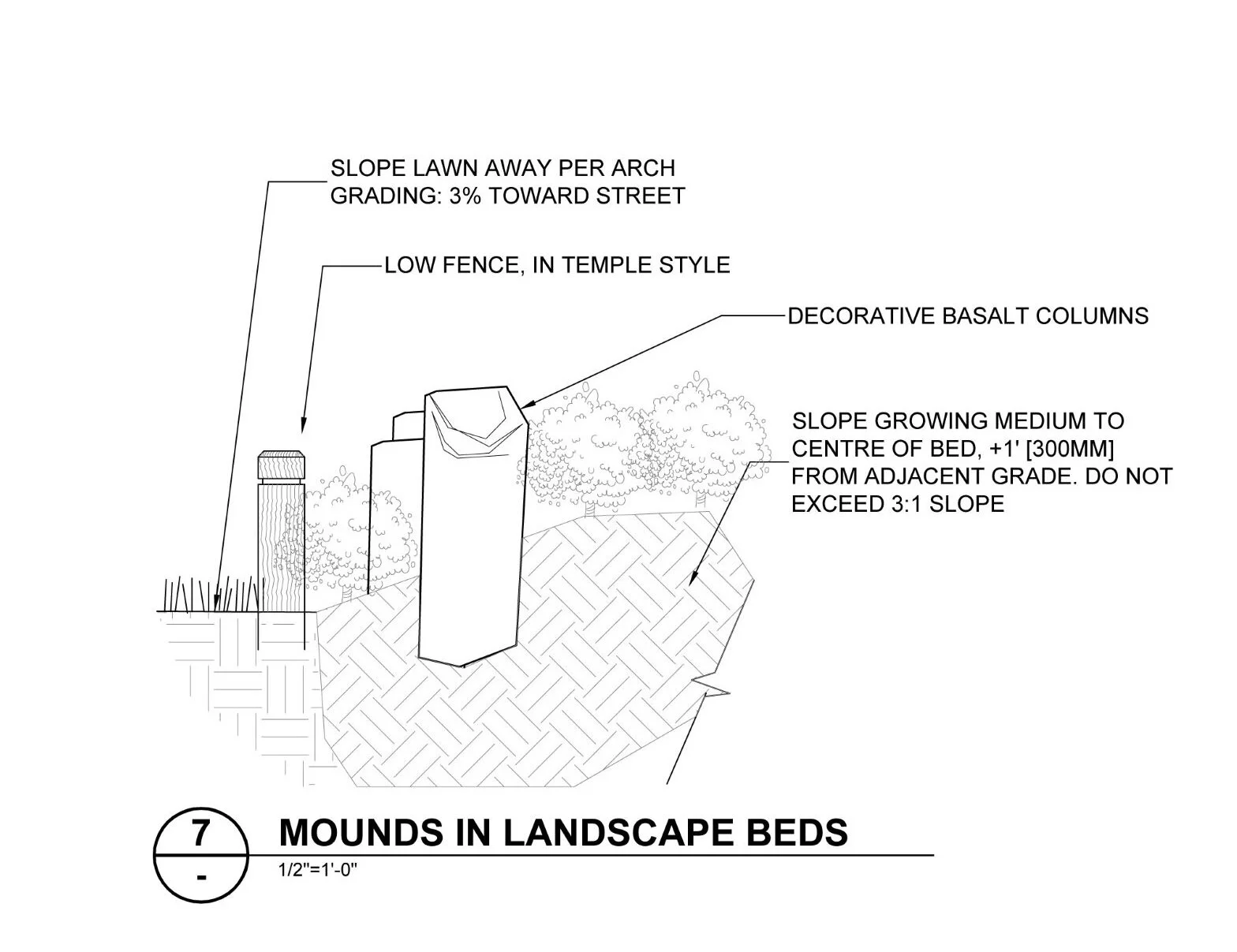 A concept devised for a clubhouse at Thunderbird Stadium. First-pass drawing to communicate the formality of possible planting, as well as colour choices for flowering shrubs: to match the school colours.